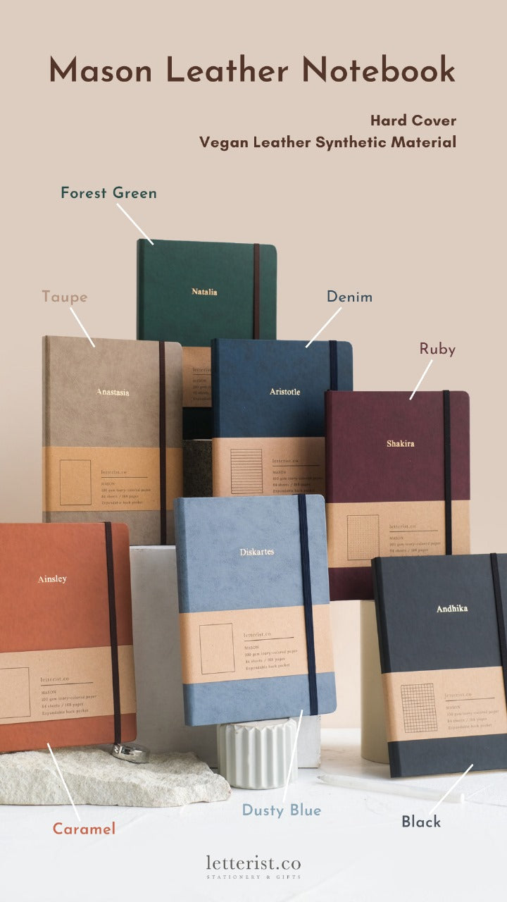 - 1 Mason Leather notebook dengan custom nama (max 16 karakter sudah termasuk spasi dan tanda baca )