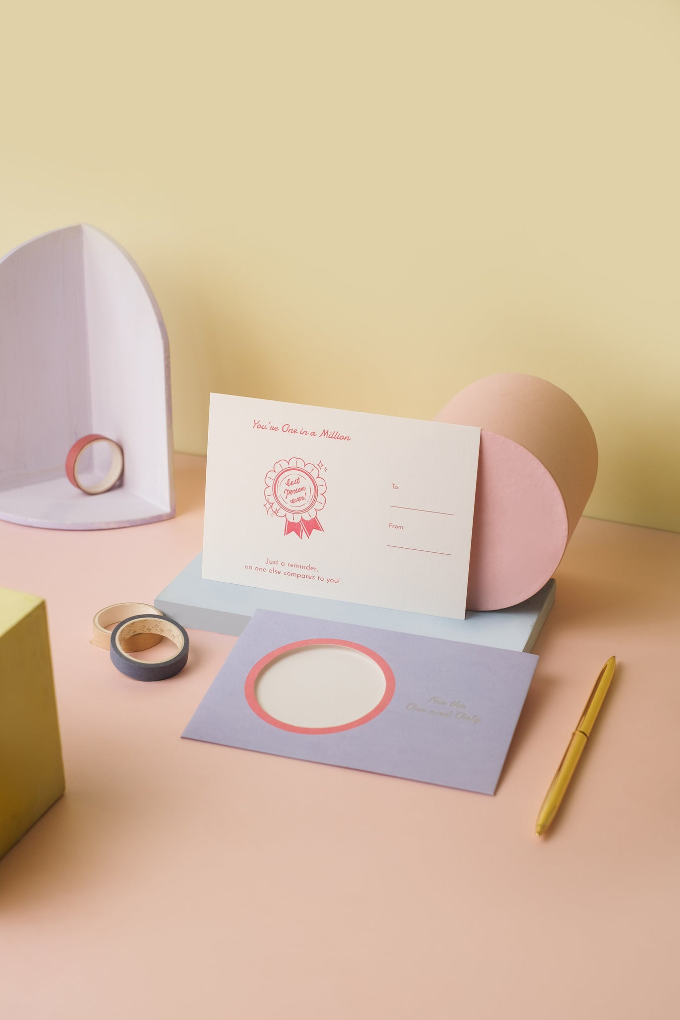 A modern and elegant greeting card with a unique sleeve cutout design, crafted from premium imported paper with silver foil detailing. Perfect for birthdays, weddings, thank-you’s, and other special occasions.